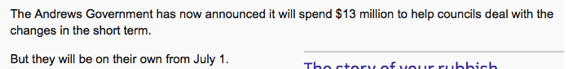 那些受到中國 “洋垃圾“ 禁令影響的市政廳可以暫時(shí)喘一口氣了,日前,維州政府愿意出資1300萬澳元幫助他們管理垃圾。但是這類援助只持續(xù)到今年7月1日。