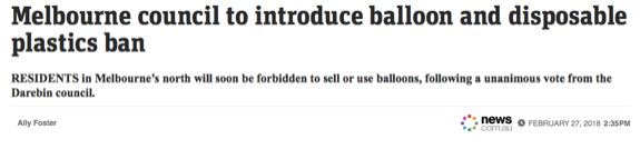 日前,作為推動(dòng)環(huán)保的一部分,墨爾本一市政廳將實(shí)行氣球和一次性塑料禁令。到那時(shí),墨爾本三個(gè)區(qū)的商戶和居民將很快被禁止出售和購買氣球以及其他塑料制品,包括一次性食物餐盒和杯子。