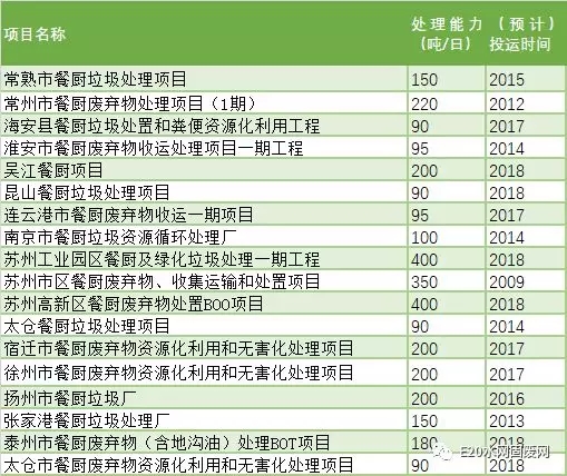 據(jù)E20研究院統(tǒng)計,截止到2017年11月,江蘇省已建(含在建)餐廚垃圾處理項目共計18個,設(shè)計處理能力為3300噸/日。浙江省則建有餐廚、廚余垃圾處理項目20個,處理能力達(dá)4300噸/日。