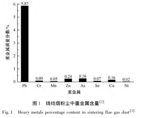 燒結(jié)機(jī)頭煙氣中的多種重金屬,如Pb、Zn、As、Cu、Cr等,主要富集煙粉塵中(圖1)。在凈化過程中,一部分被除塵器捕集,作為返灰配入原料中重新燒結(jié),使得燒結(jié)礦中重屬含量增高;一部分經(jīng)由脫硫設(shè)備富集在脫硫副產(chǎn)物中,影響其安全利用;剩余部分會(huì)隨著煙道排,對(duì)周邊環(huán)境造成重污染。較高比電阻的重金屬氧化物,會(huì)在電極上形成絕緣層,降低電除塵器的除塵效率,影響正常排灰。