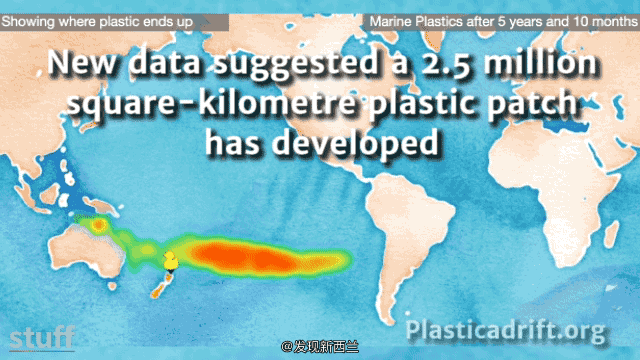 在新西蘭北島東部的南太平洋上,有一個(gè)海洋垃圾島,面積相當(dāng)于4個(gè)新西蘭國土的大小!