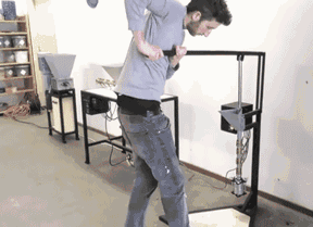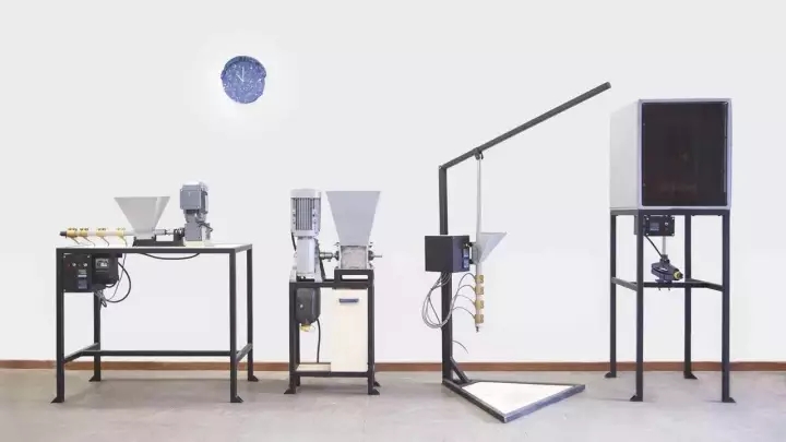 接下來,見證奇跡的時(shí)刻就到了!你只需要將塑料碎片倒進(jìn)壓縮機(jī)中,塑料就會(huì)自動(dòng)加熱,然后你把它們壓入模具。