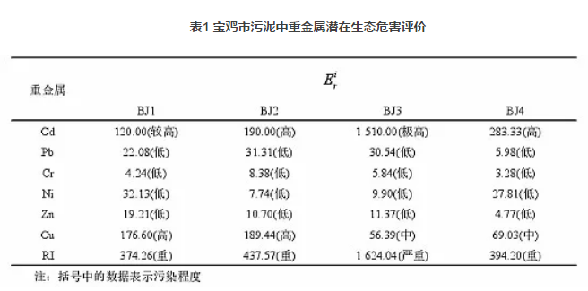 二、寶雞市污泥重金屬含量及風(fēng)險(xiǎn)評(píng)價(jià)