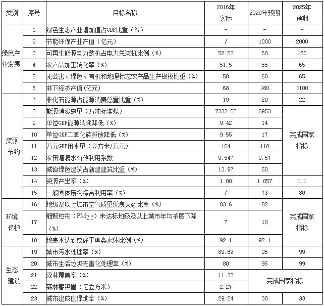 綠色生態(tài)產(chǎn)業(yè)發(fā)展規(guī)模進(jìn)一步壯大。產(chǎn)業(yè)結(jié)構(gòu)進(jìn)一步優(yōu)化,節(jié)能環(huán)保產(chǎn)業(yè)產(chǎn)值2020年達(dá)到1000億元,2025年達(dá)到2000億元。清潔生產(chǎn)、高效生產(chǎn)、低碳生產(chǎn)的產(chǎn)業(yè)發(fā)展特征更加明顯,基本建成協(xié)調(diào)發(fā)展的生態(tài)產(chǎn)業(yè)體系,綠色生態(tài)產(chǎn)業(yè)增加值占GDP的比重明顯提高,建成一批生態(tài)產(chǎn)業(yè)示范工程和示范園區(qū),生態(tài)經(jīng)濟(jì)對(duì)經(jīng)濟(jì)社會(huì)發(fā)展的貢獻(xiàn)率顯著提高。