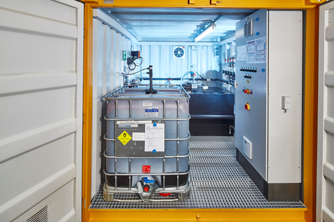 圖10: 原位化學(xué)及原位生物修復(fù)站。由兩個十尺小集裝箱組成,可機動靈活布置。自動控制。可自動投加不同藥劑。