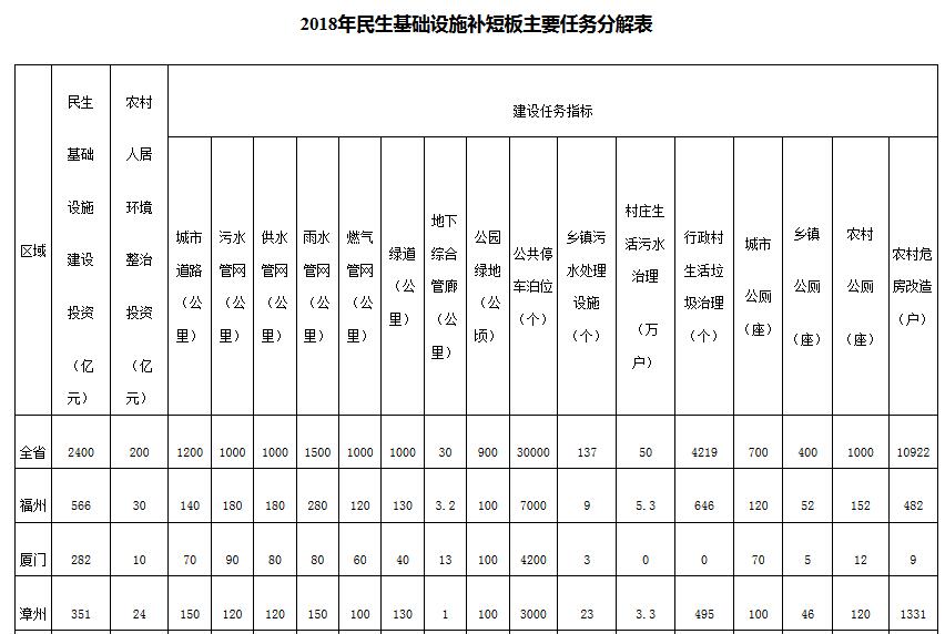 日前,福建印發(fā)《2018年民生基礎(chǔ)設(shè)施補(bǔ)短板實(shí)施方案》。