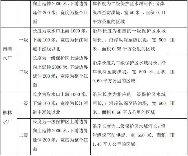 陸域一級(jí)保護(hù)區(qū):取水口側(cè)正常水位線以上200米范圍內(nèi)的陸域。陸域二級(jí)保護(hù)區(qū):一級(jí)保護(hù)區(qū)外不小于800米的區(qū)域?yàn)槎?jí)保護(hù)區(qū)范圍。