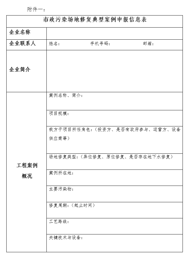附件一:市政污染場地修復(fù)典型案例申報(bào)信息表