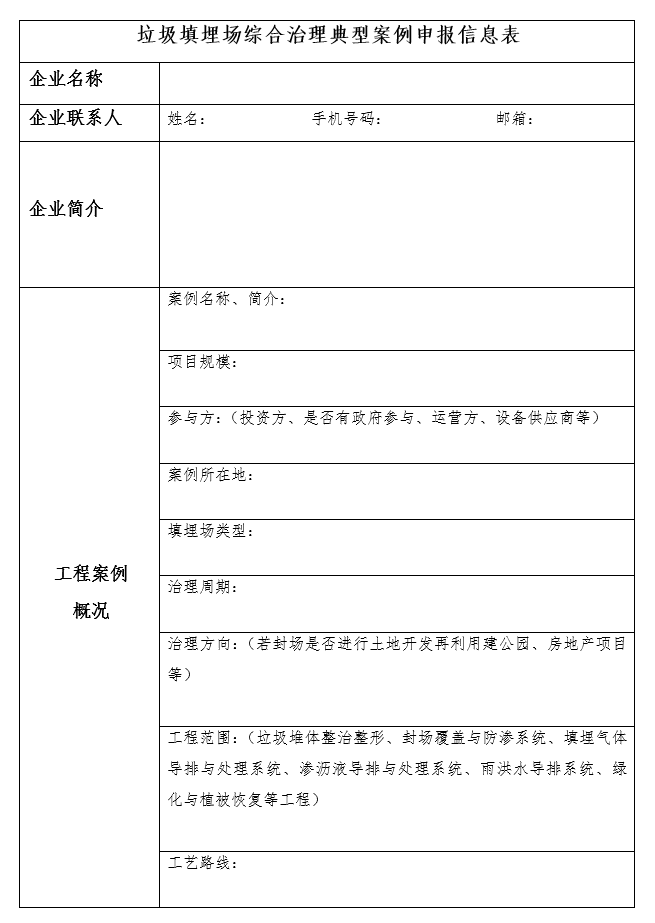 附件二:垃圾填埋場綜合治理典型案例申報(bào)信息表