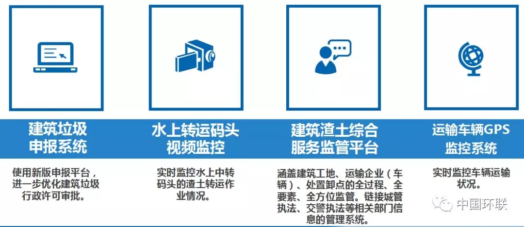 4、建立全方位信息化體系:進(jìn)一步梳理建筑垃圾申報(bào)平臺(tái)、GPS監(jiān)控平臺(tái)、碼頭視頻監(jiān)控系統(tǒng)、工地監(jiān)控視頻、計(jì)量稱重系統(tǒng)、微信舉報(bào)平臺(tái)和綜合服務(wù)監(jiān)管平臺(tái)等建筑垃圾管理信息化系統(tǒng),通過提升科技化手段加強(qiáng)日常管理。