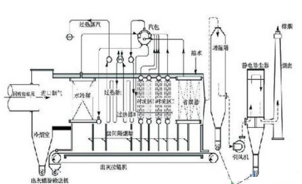 其中,余熱鍋爐是利用垃圾灰渣、廢氣和廢液中溫度不夠高、難以直接用來發(fā)電的余熱集中起來,用于原料的預(yù)加熱和其它需熱功能中。有了它,垃圾焚燒的發(fā)電效率就能夠大大提高,排出的煙氣和灰渣的溫度可以大幅下降。