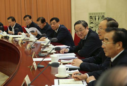 2014年10月30日,全國(guó)政協(xié)在北京召開雙周協(xié)商座談會(huì),就“利用水泥窯協(xié)同處置垃圾廢棄物”問題建言獻(xiàn)策。全國(guó)政協(xié)主席俞正聲主持會(huì)議并講話。新華社記者 劉衛(wèi)兵 攝