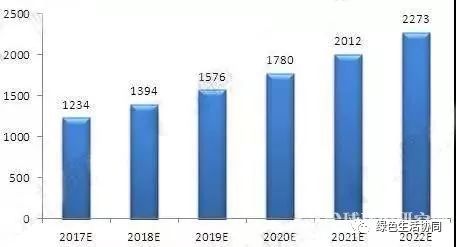 根據(jù)規(guī)劃的相關(guān)目標(biāo)和標(biāo)準(zhǔn),預(yù)計(jì)我國(guó)垃圾焚燒爐以年均復(fù)合增長(zhǎng)率17.23%的速度增長(zhǎng),到2022年我國(guó)垃圾焚燒爐將達(dá)到2273臺(tái),是當(dāng)前焚燒爐數(shù)量的2倍之多。下圖是對(duì)中國(guó)垃圾焚燒爐行業(yè)市場(chǎng)規(guī)模的預(yù)測(cè)。