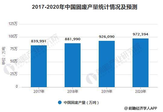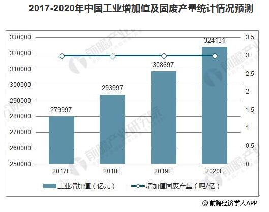 2007年全部工業(yè)增加值為11.17 萬億元,2007 年污染普查固廢產(chǎn)量為38.52億噸,根據(jù)此比例假設(shè)每億元工業(yè)增加值約帶來3.45噸固廢,考慮到近年工藝水平及節(jié)能降耗能力提升,假設(shè)每億元工業(yè)增加值帶來3噸固廢。假設(shè)2018~2020年工業(yè)增加值增速為5%,據(jù)此得到2020年固廢產(chǎn)量預(yù)計(jì)為9.72億噸。危廢占固廢比例為1.19%。