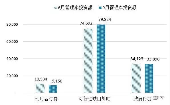 億元,分別占管理庫(kù)的43.5%和50.5%。京津冀累計(jì)項(xiàng)目總數(shù)423個(gè)、投資額7,822億元,分別占管理庫(kù)的5.1%和6.4%;累計(jì)落地項(xiàng)目總數(shù)216個(gè)、投資額4,763億元,分別占管理庫(kù)落地項(xiàng)目的5.3%和7.5%。回報(bào)機(jī)制方面,三季度使用者付費(fèi)類項(xiàng)目?jī)魷p項(xiàng)目92個(gè)、投資額1,435億元;可行性缺口補(bǔ)助類項(xiàng)目新增項(xiàng)目509個(gè)、投資額5,132億元;政府付費(fèi)類項(xiàng)目新增123個(gè),投資額凈減227億元。管理庫(kù)累計(jì)使用者付費(fèi)類項(xiàng)目623個(gè)、投資額9,150億元;累計(jì)可行性缺口補(bǔ)助(即政府市場(chǎng)混合付費(fèi))類項(xiàng)目4,407個(gè)、投資額8.0萬(wàn)億元;累計(jì)政府付費(fèi)類項(xiàng)目3,259個(gè)、投資額3.4萬(wàn)億元。