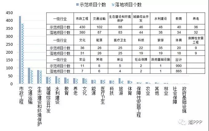 三季度,四批示范項(xiàng)目共990個(gè),投資額2.1萬(wàn)億元,覆蓋31個(gè)省(自治區(qū)、直轄市)及新疆兵團(tuán)和19個(gè)領(lǐng)域。其中,2014年第一批示范項(xiàng)目20個(gè)(最初為30個(gè),陸續(xù)調(diào)出10個(gè)),總投資額560億元;2015年第二批示范項(xiàng)目158個(gè)(最初為206個(gè),陸續(xù)調(diào)出48個(gè)),總投資額4,271億元;2016年第三批示范項(xiàng)目426個(gè)(最初為516個(gè),陸續(xù)調(diào)出90個(gè)),總投資額9,296億元;第四批示范項(xiàng)目386個(gè)(2018年2月頒布,最初為396個(gè),陸續(xù)調(diào)出10個(gè)),總投資額7,259億元。落地示范項(xiàng)目共865個(gè),投資額1.9萬(wàn)億元。