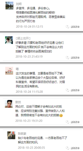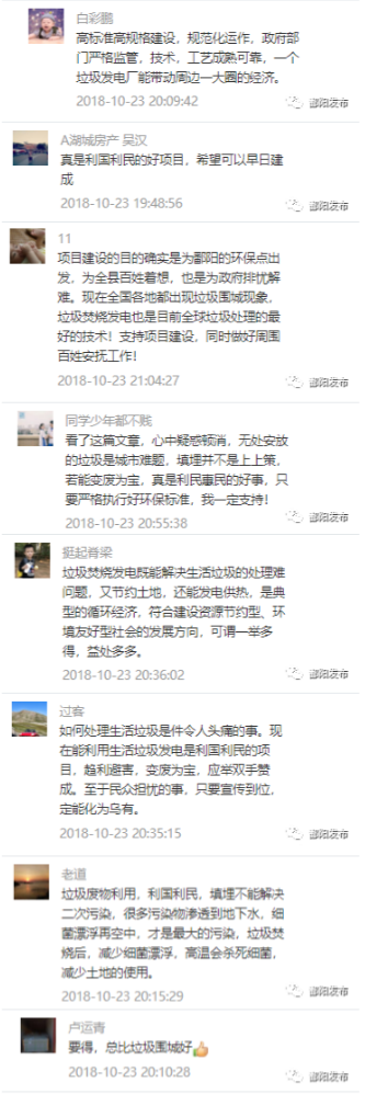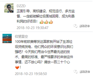 短時間內(nèi),《哦!生活垃圾焚燒發(fā)電原來是這么回事!》一文閱讀量突破三萬,可見鄱陽縣社會各界對該項目的廣泛關(guān)注。網(wǎng)友的留言中有90%對鄱陽縣建造生活垃圾焚燒發(fā)電廠表示認(rèn)可、鼓勵。