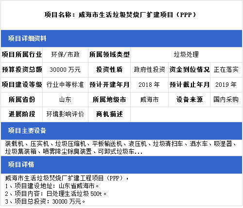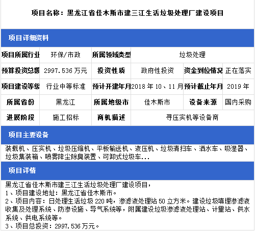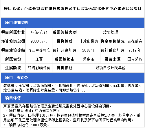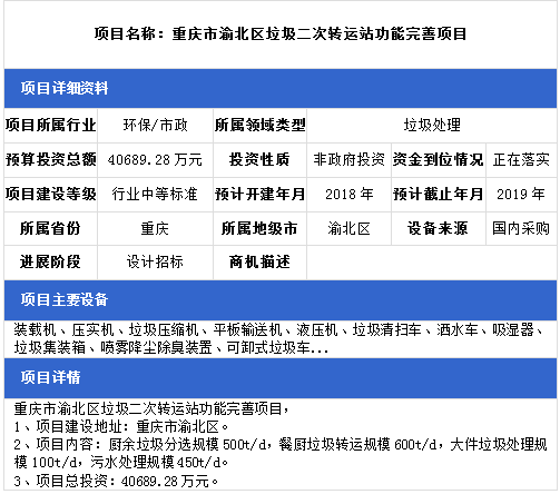 中項網(wǎng)獨家授權(quán)北極星固廢網(wǎng)發(fā)布最新垃圾處理項目(2018年11月5日更新),其中包括城鄉(xiāng)環(huán)衛(wèi)一體化項目、垃圾填埋場項目、垃圾焚燒發(fā)電項目等。具體內(nèi)容如下: