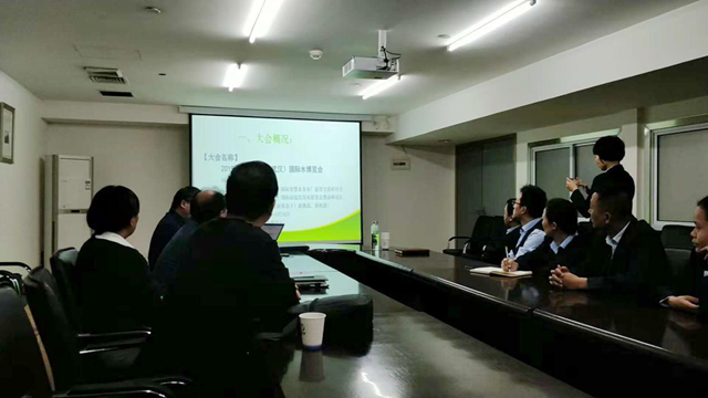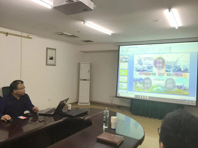 其次由水博會組委會項目運營總監(jiān)胡兵為參加會議的相關(guān)領(lǐng)導介紹展示2019中國(武漢)國際水博覽會項目實施方案的講解,詳見下圖