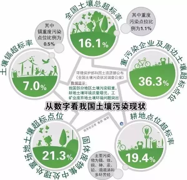 我國情況嚴重,土壤總超標率為16.1%。根據(jù)統(tǒng)計局2014年中國土壤污染情況調(diào)查(調(diào)查的范圍是除香港、澳門特別行政區(qū)和臺灣省以外的陸地國土,調(diào)查點位覆蓋全部耕地,部分林地、草地、未利用地和建設(shè)用地,實際調(diào)查面積約630萬平方公里。)數(shù)據(jù)顯示:全國土壤環(huán)境狀況總體不容樂觀,部分地區(qū)土壤污染較重,耕地土...