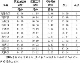 市城管委辦公室日前發(fā)布《關(guān)于9月份濟(jì)南市專項考核成績的通報》(排名見下表),11個區(qū)縣(含濟(jì)南高新區(qū)、南部山區(qū))考核成績中,南部山區(qū)獲得第一名,天橋區(qū)獲得最后一名。9月27日至28日,濟(jì)南市城管局通過組織第三方暗查、區(qū)縣互評、問卷調(diào)查的方式,對濟(jì)南市11個區(qū)縣(含濟(jì)南高新區(qū)、南部山區(qū))城鄉(xiāng)環(huán)衛(wèi)一體化...