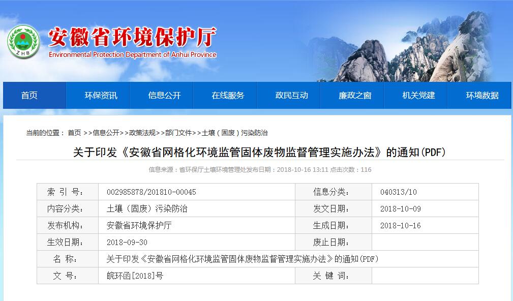 日前,環(huán)保廳公布《安徽省網(wǎng)格化環(huán)境監(jiān)管監(jiān)督管理實(shí)施辦法》,詳情如下:各市、省直管縣環(huán)保局、住房城鄉(xiāng)建設(shè)委、城管局、國土資源局、農(nóng)委、水利局、林業(yè)局、安全監(jiān)管局:根據(jù)《安徽省人民政府關(guān)于建立固體廢物污染防控長效機(jī)制的意見》(皖政〔2018〕51號(hào))要求,制定了《安徽省網(wǎng)格化環(huán)境監(jiān)管實(shí)施辦法》,現(xiàn)印發(fā)給...