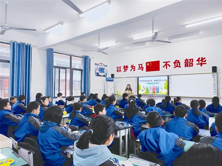 “你覺得垃圾分類是什么?”“是一種生活習慣,是一種新時尚……”“我們應該怎么做?”“不同的垃圾分類投放,平時雙面用紙,不剩飯,減少垃圾產(chǎn)生。”3月11日上午,在宜昌市夷陵區(qū)東湖初中七年級十班的教室里,生態(tài)小公民任課教師穆云云結合多媒體課件,正為同學們講解生活垃圾分類知識,還時不時以問答的形式與學生互...