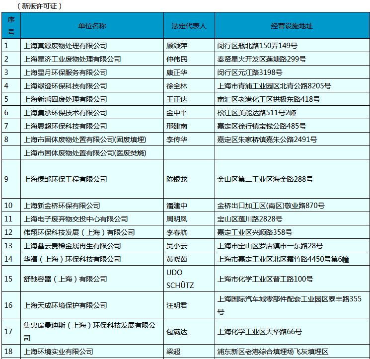 11月7日,上海環(huán)保局發(fā)布了《危險(xiǎn)廢物經(jīng)營許可證名單》,共計(jì)26家企業(yè),詳情如下: