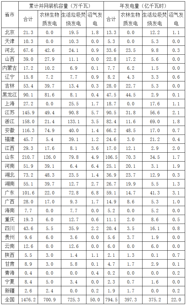在各種政策的支持下,我國在生物質(zhì)能發(fā)電領(lǐng)域取得了重大進(jìn)展。截至2017年底,全國共有30個(gè)省(區(qū)、市)投產(chǎn)了747個(gè)生物質(zhì)發(fā)電項(xiàng)目,并網(wǎng)裝機(jī)容量1476.2萬千瓦(不含自備電廠),年發(fā)電量794.5億千瓦時(shí)。其中農(nóng)林生物質(zhì)發(fā)電項(xiàng)目271個(gè),累計(jì)并網(wǎng)裝機(jī)700.9萬千瓦,年發(fā)電量397.3億千瓦時(shí);生...