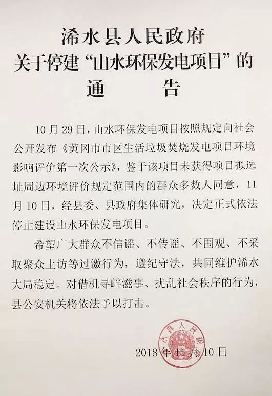 11月9日下午浠水縣人民政府官方發(fā)布了關(guān)于停建“山水環(huán)保發(fā)電項(xiàng)目”通告,理由是鑒于該項(xiàng)目未獲得項(xiàng)目擬選地址周邊環(huán)境評(píng)價(jià)規(guī)定范圍內(nèi)的群眾多數(shù)人同意,經(jīng)縣委、縣政府集體研究,決定停止建設(shè)山水環(huán)保發(fā)電項(xiàng)目。就此浠水山水環(huán)保發(fā)電項(xiàng)目引起的群眾聚集反對事件應(yīng)該算告一段落了,這場看似群眾維護(hù)自身權(quán)利的勝利,是否...