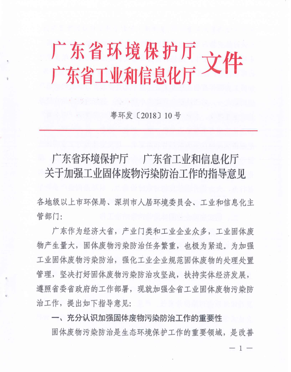 近日,廣東省環(huán)境保護廳 廣東省工業(yè)和信息化廳發(fā)布關于加強工業(yè)固體廢物污染防治工作的指導意見,詳情如下: