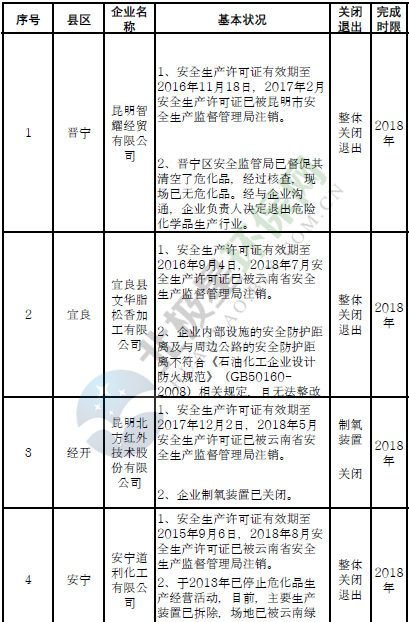 日前云南省應(yīng)急管理廳發(fā)布了印發(fā)危險(xiǎn)化學(xué)品安全工程三年行動(dòng)計(jì)劃有關(guān)企業(yè)名單,明確關(guān)閉退出、就地改造、綜合整治的危險(xiǎn)化學(xué)品生產(chǎn)(儲(chǔ)存)企業(yè)名單。對(duì)91戶危險(xiǎn)化學(xué)品生產(chǎn)(儲(chǔ)存)企業(yè)和部分生產(chǎn)裝置,雖不在城鎮(zhèn)人口密集區(qū),但由于不符合產(chǎn)業(yè)政策、不具備基本安全生產(chǎn)條件且無法整改的,實(shí)施關(guān)閉退出。對(duì)37戶內(nèi)部安全...
